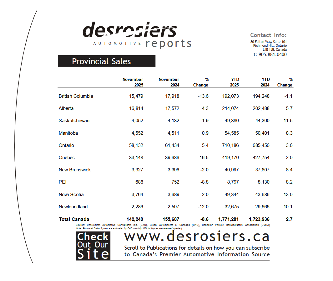 Provincial Sales November 2025